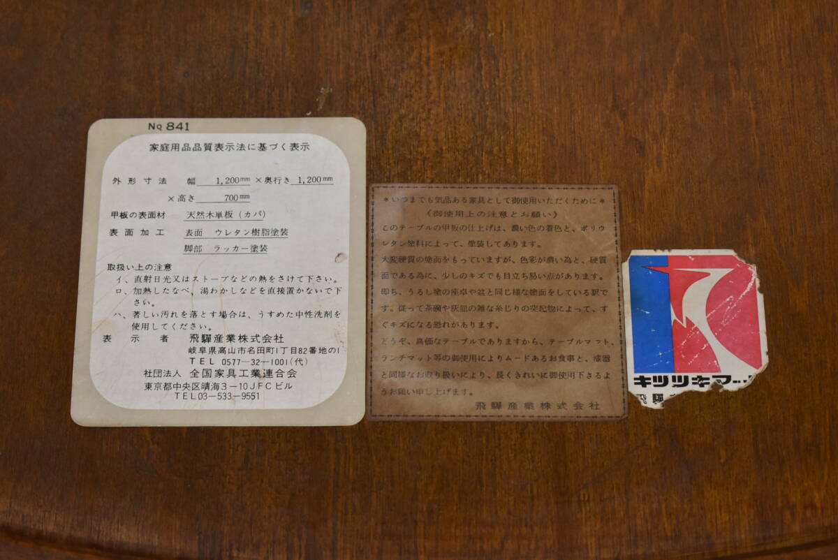 zyt2349ジ 飛騨産業 穂高 ダイニングテーブル 丸形天板×1本脚 直径120cm/幅120cm カバ材 丸型/円形/オールドキツツキ/現状品 70716-11 の投稿です。