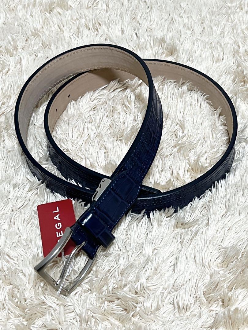 即決★未使用品 日本製 REGAL★フリーサイズ レザークロコ型押しベルト リーガル ネイビー ビジネス ドレス 本革