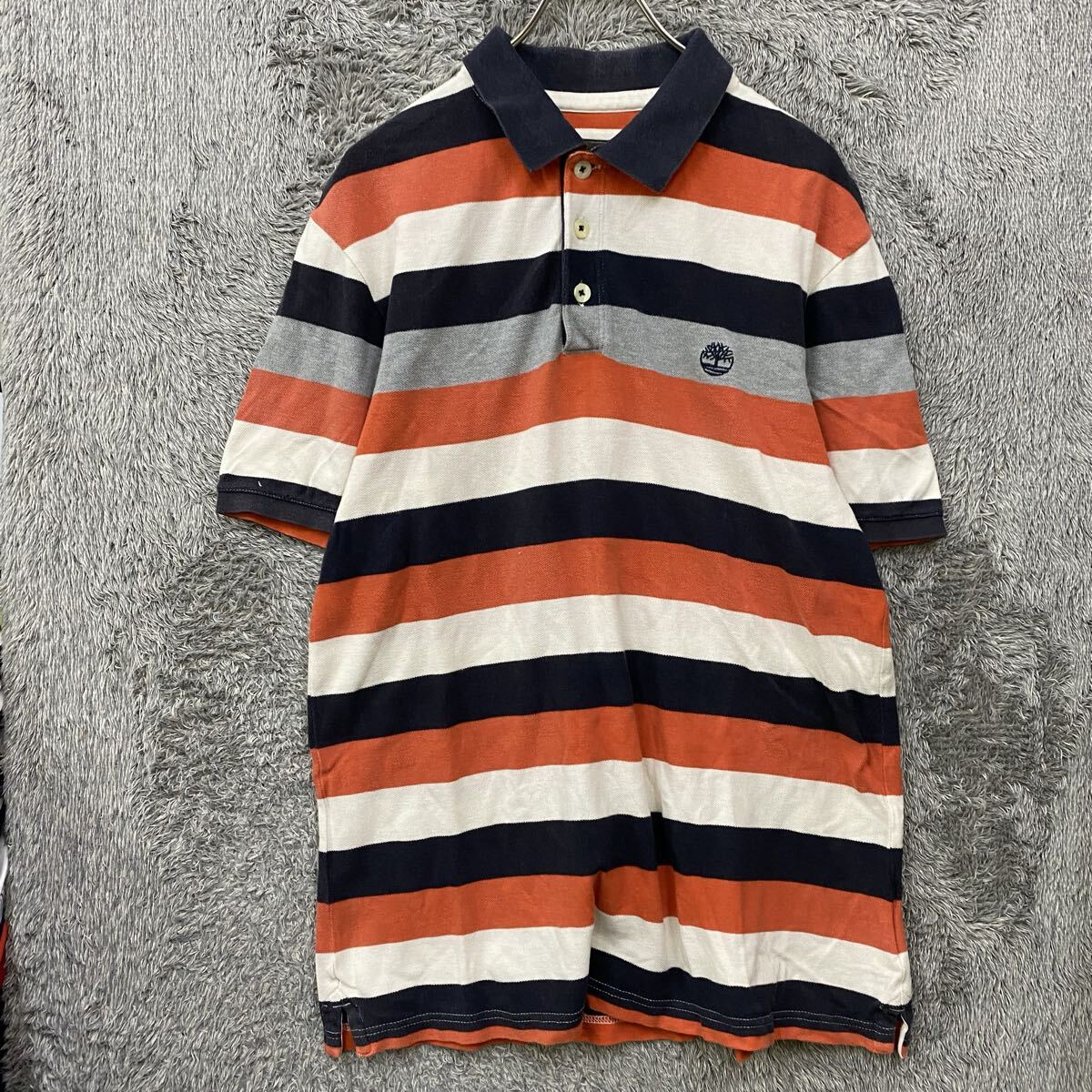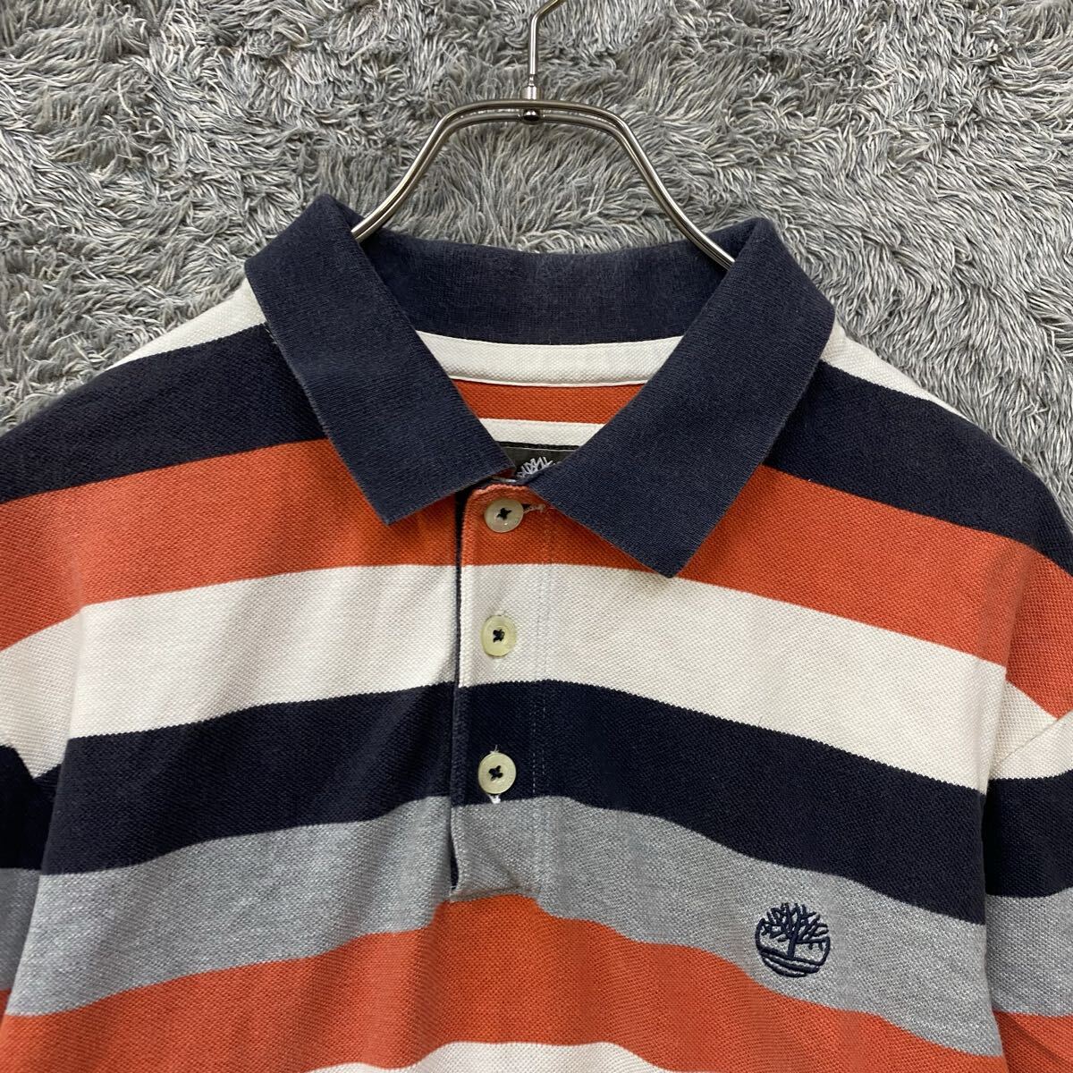 Timberland ティンバーランド 半袖ポロシャツ 半袖シャツ 鹿の子 ボーダー サイズL マルチカラー オレンジ メンズ トップス 最落なし (K2