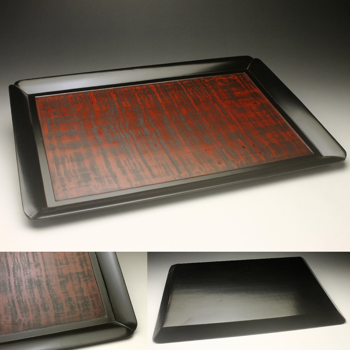 Product name: 【余韻】 茶道具 天然木製 漆塗 布目 長角盆 煎茶盆★長さ:30cm 時代物<同梱可>