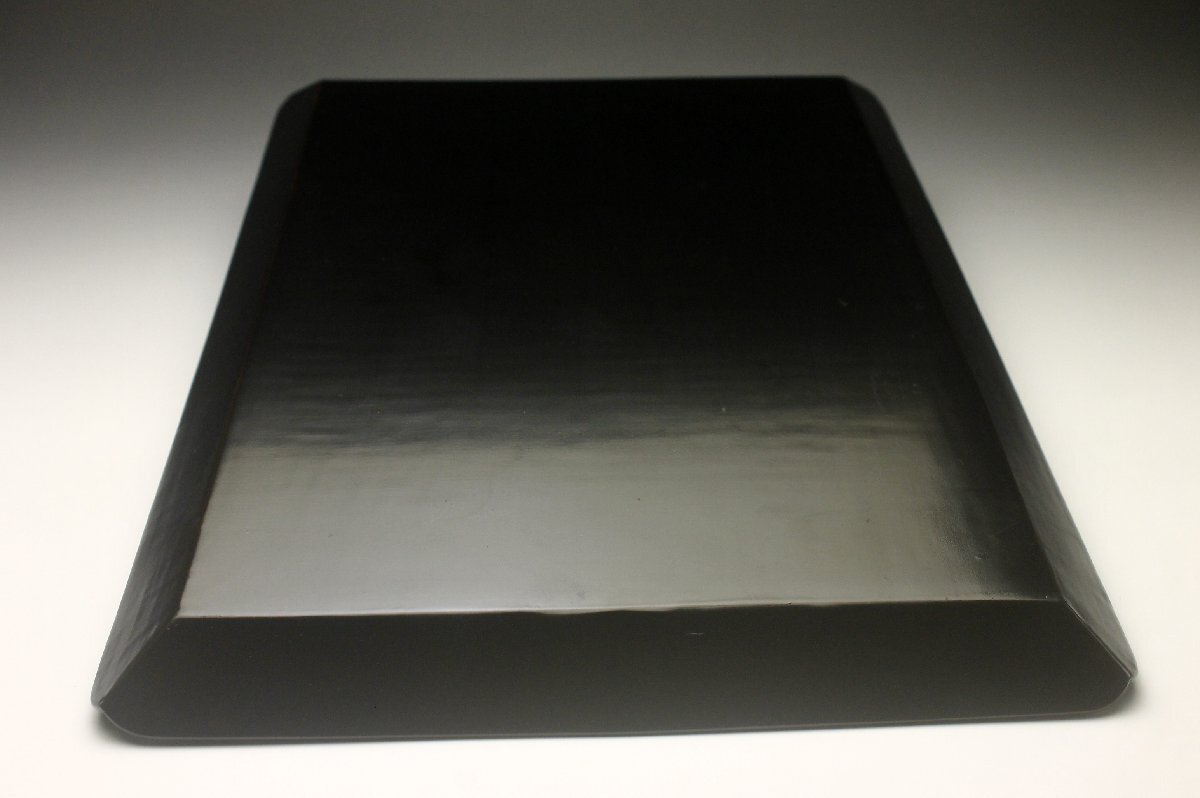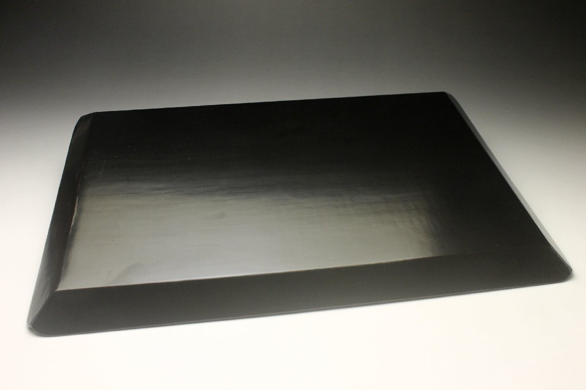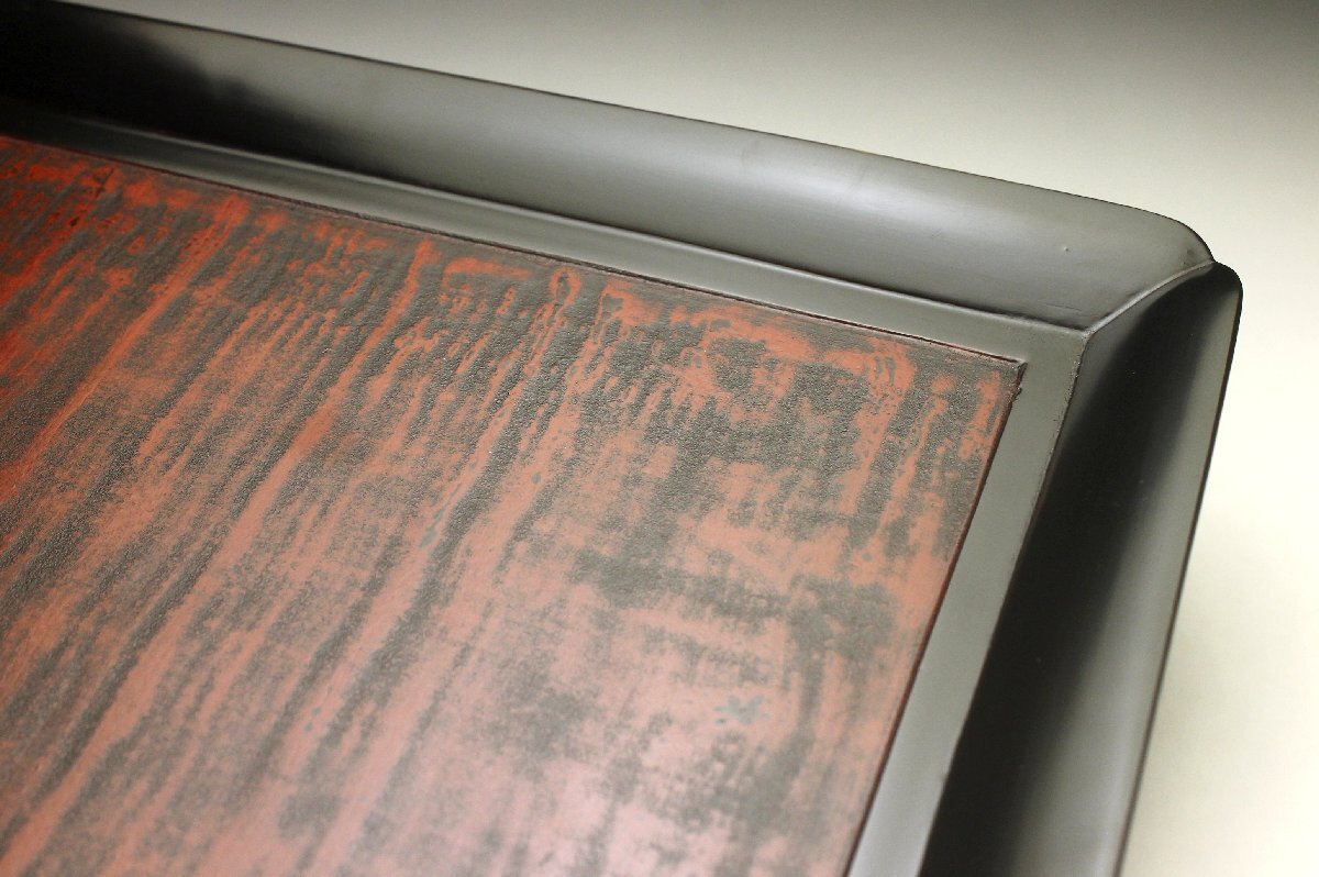 【余韻】 茶道具 天然木製 漆塗 布目 長角盆 煎茶盆★長さ:30cm 時代物<同梱可>