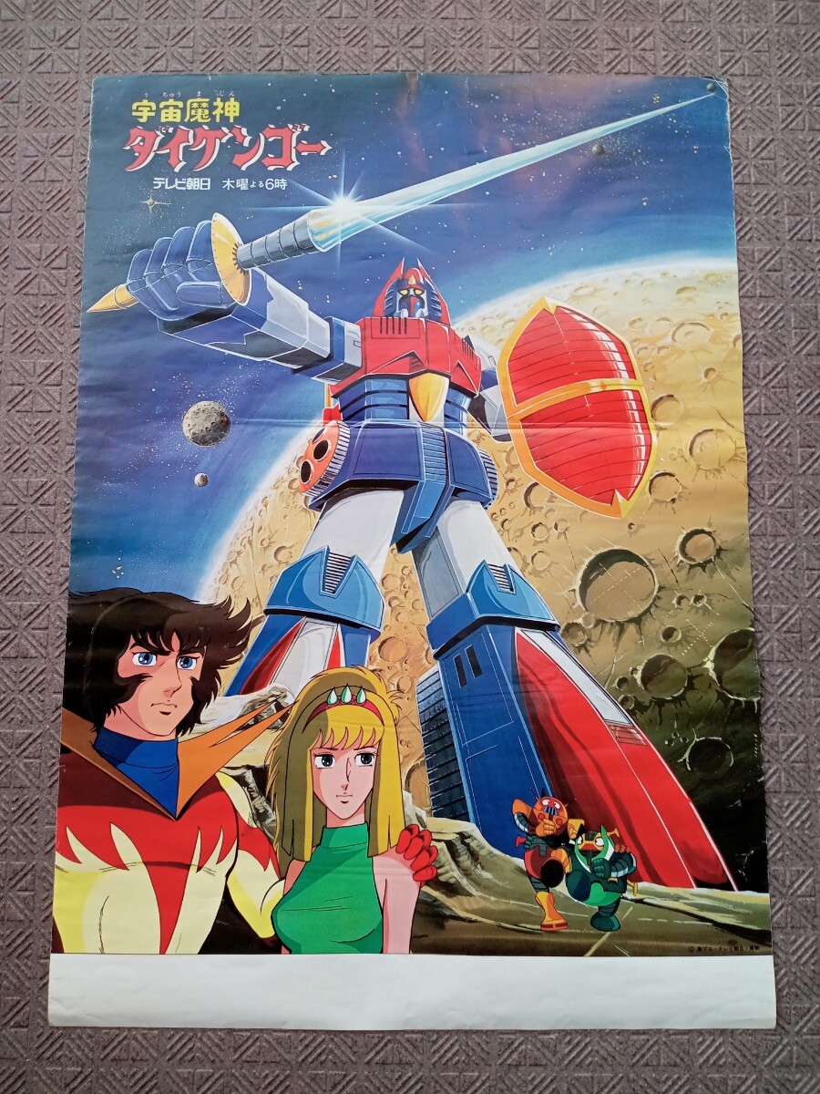 テレビ朝日系アニメ「宇宙魔神ダイケンゴー」番組宣伝ポスター(昭和53年)です。B2サイズ。状態は経年による少イタミ(保管時の巻き跡、横折れ、少シワ、少スレ、ポスター周り少折れ及び少破れ箇所複数等)ありますので、写真で確認をお願いします。ノークレーム、ノーリターンでお願いします。