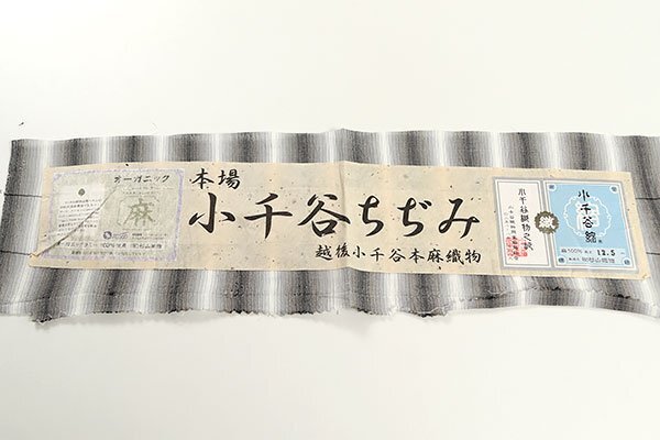 ややハリ感のある小千谷ちぢみは、グレー系の印象でございます。
