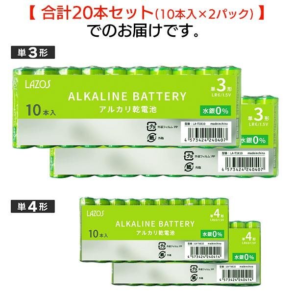 Product name: アルカリ乾電池 単4形 20本セット 乾電池 長寿命 水銀ゼロ 単四 防災 おもちゃ 予備 家電 送料無料 2M◇ LAZOS:単4乾電池10本入x2パック