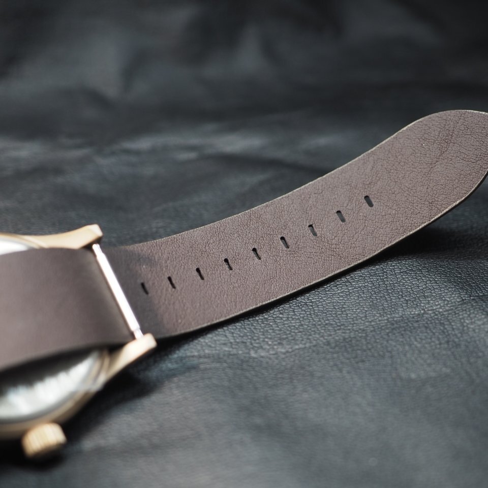 チタニウムケースバックとブラウンソフトレザーのNATOストラップを備えています。