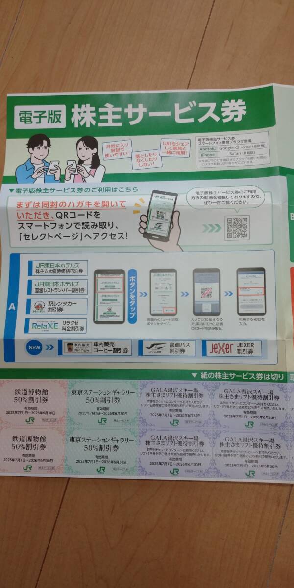 JR東日本 株主優待割引券(4割引) 3枚と株主サービス券です。