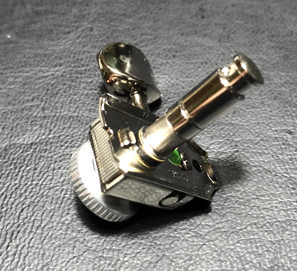 ビンテージライクなルックスに、ロック機能を搭載し、シュバーゼルペグのように、裏の丸いボタン部分を回すことで、