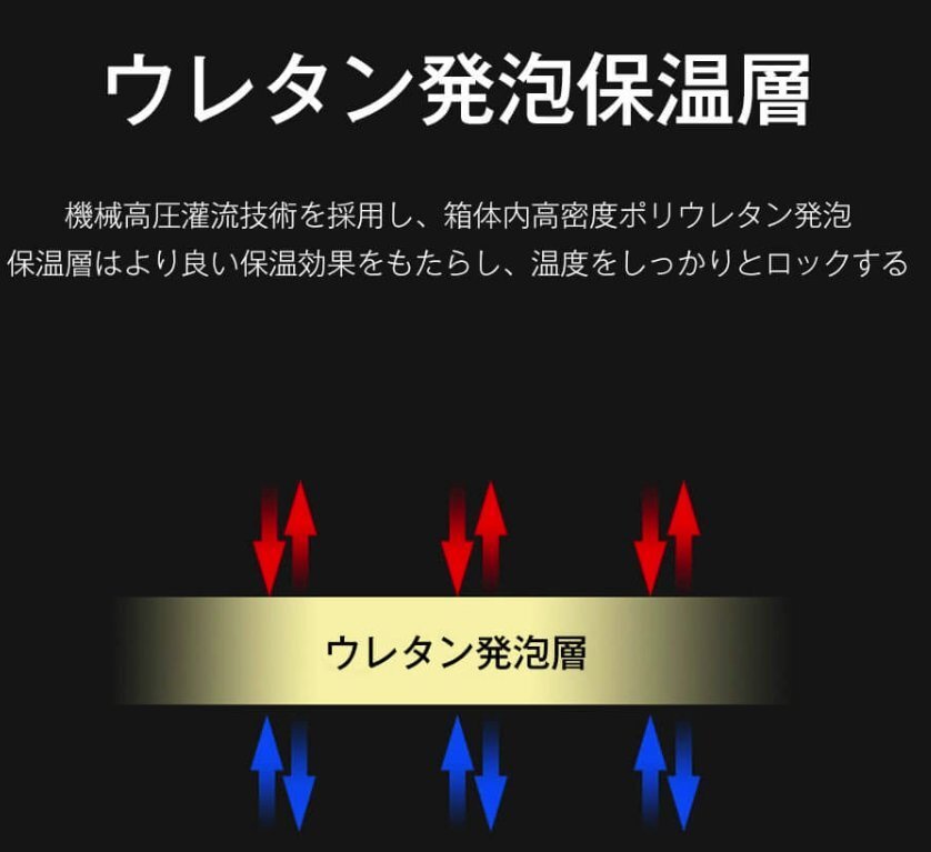 保冷性に優れたウレタンフォームという断熱材が使用され、電源が切られた状態では氷を数時間維持できます。