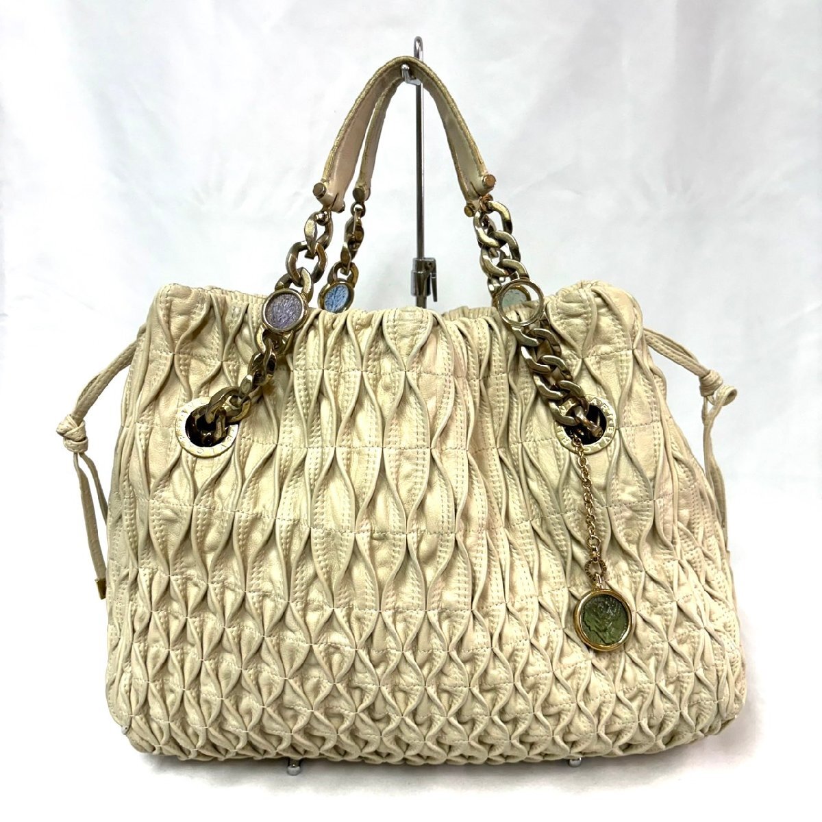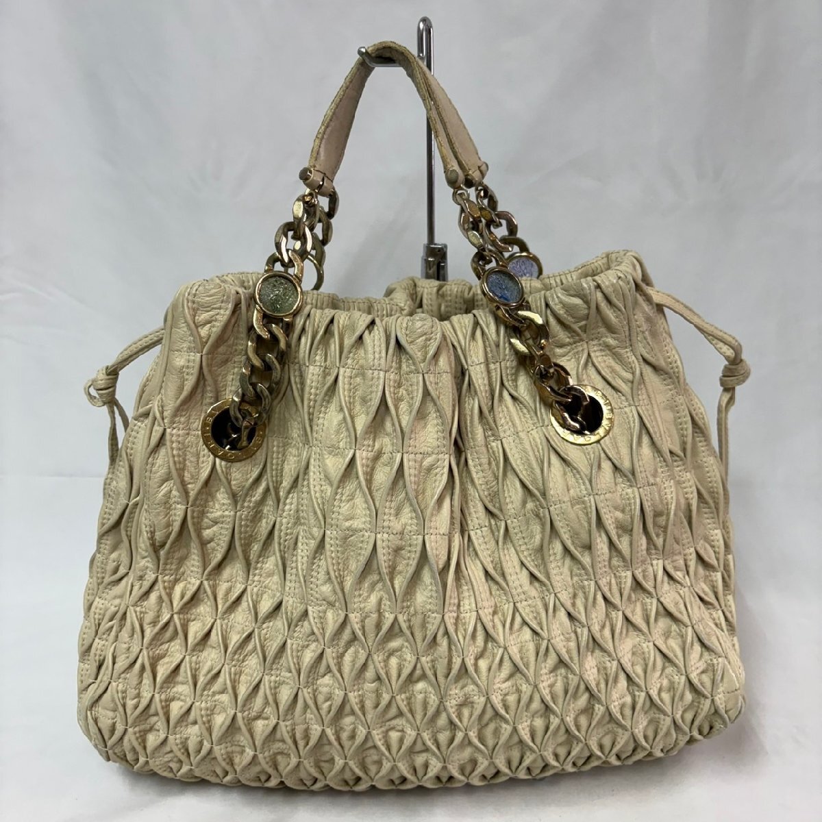 Product name: ☆ブルガリ モネーテ ギャザード チェーン トートバッグ ハンドバッグ ショルダーバッグ ベージュ レザー