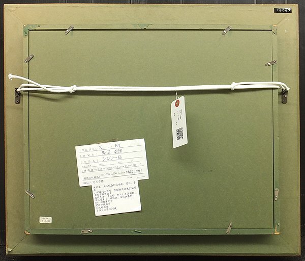 お支払い方法はみずほ銀行、ゆうちょ銀行、ストア決済(コンビニ決済含)、御用意しております。 発送は佐川急便、ヤマト運輸、西濃運輸(大型作品は西濃運輸となります。概ね40号以上の作品)いずれかの利用となります。※運送会社に御希望のある方は御落札後お知らせください ※入金確認後2日以内に発送致します 新規IDの方及び悪い評価が多い方からのいたずら入札が大変多いので入札を削除する事もあります。 出来る限り現物に近い色合いを出せるように撮影しておりますが、人それぞれの感じ方や色彩感覚、撮影環境、カメラ、モニター等環境の違いよる差異は御了承下さい。 同梱は致しません。個別に御決済をお願い申し上げます。保管箱や黄袋の有無は表中附帯品の欄に記載致しております。 額縁や箱等はあくまで商品ではなく附帯品とお考え下さい。額は新品ではありません。販売しているのは額縁ではなく作品そのものです。 額、箱等に対する落札後のクレームは一切御遠慮ください。額縁や箱等附帯品重視の方は御遠慮頂いた方が宜しいかと思います。箱作成等を御希望される方は別途料金が必要です。 あまりに仕入れ値とかけ離れている場合は出品を取り消す事がございます。御理解下さいませ。