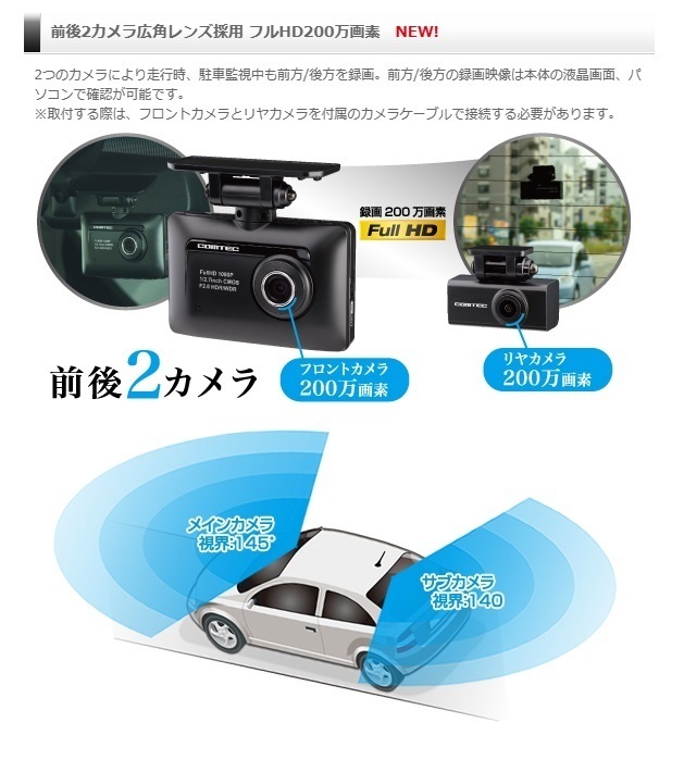 Product name: ◆未使用 COMTEC(コムテック) 超高画質フルHD ドライブレコーダー ZDR-015 前後2カメラ フルHD200万画素 microSD(16GB)付 駐車監視付