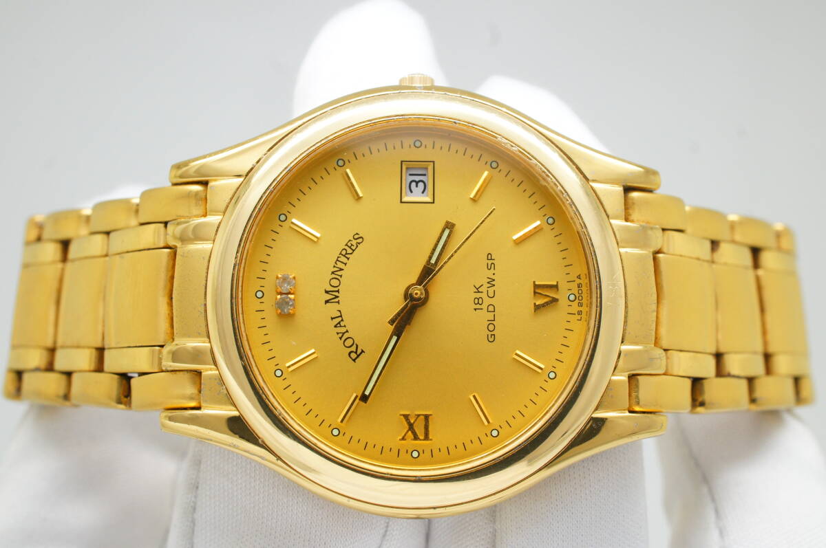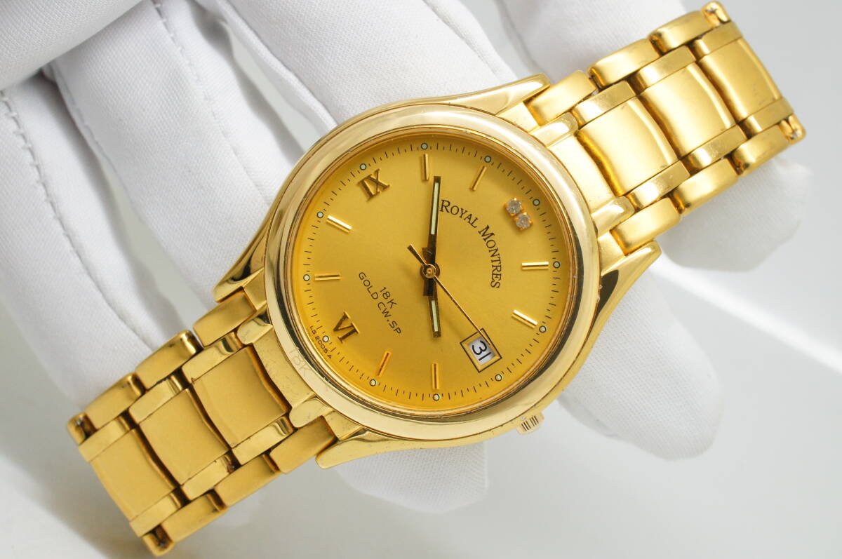 H7●作動良好 ROYAL MONTRES ロイヤルモントレス 18K GOLD CW.SP デイト RM-301724M メンズ腕時計 ゴールド金 お洒落 クォーツ