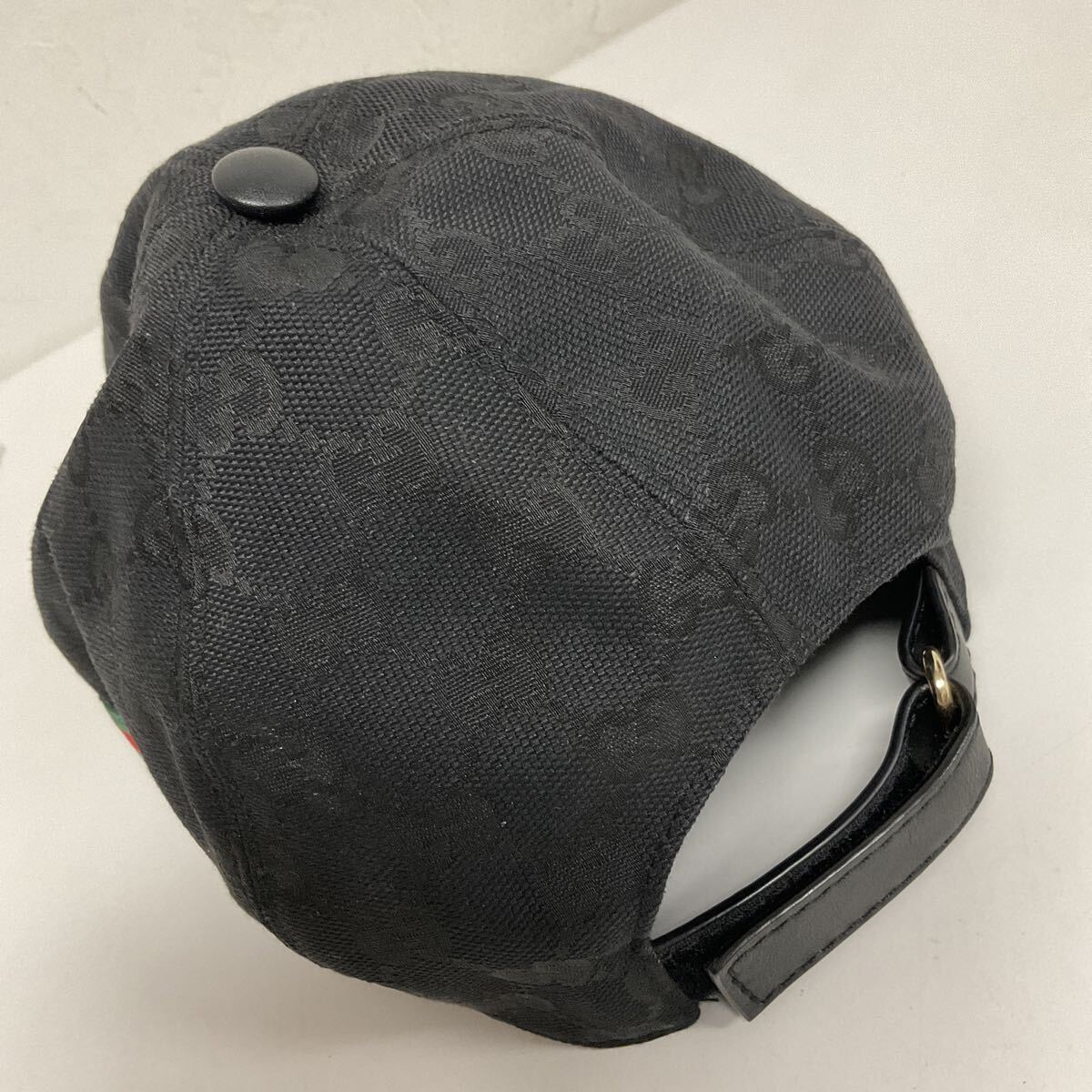 Product name: 営IS138-60◆ GUCCI グッチ シェリーライン ベースボールキャップ GGキャンバス レザー ブラック 帽子 【サイズL・59】