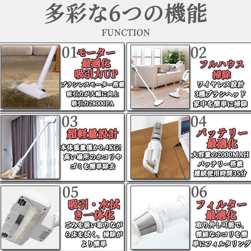 新品掃除機 4way コードレス コードレス掃除機 28000pa 軽量 強力吸引 ハンディクリーナー スティック型 サイクロン式