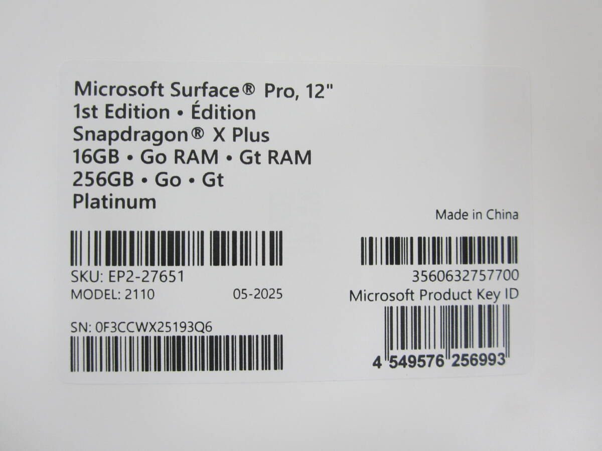 Product name: 未開封 Microsoft Surface Pro 12 インチ EP2-27651 Snapdragon X Plus 16GB/256GB タブレットPC マイクロソフト 激安1円スタート