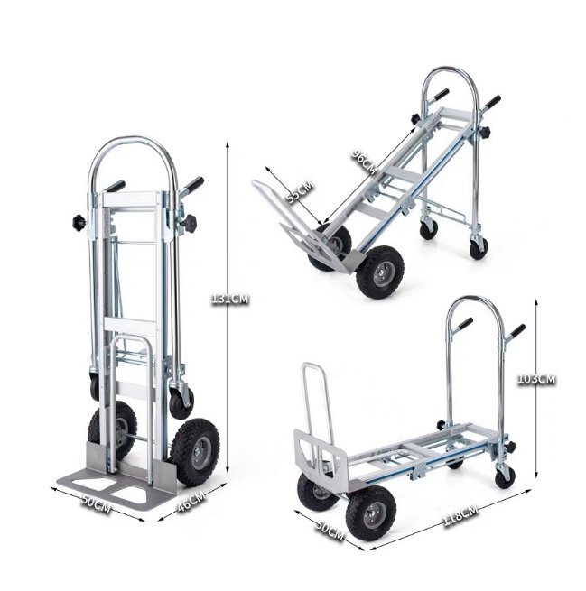 Product name: 3-in-1 アルミ台車 折りたたみ式 キャリーカート ゴム輪 静音 荷物運ぶ 引っ越し車 業務用 家庭用 アウトドア 防災用 耐荷重250kg