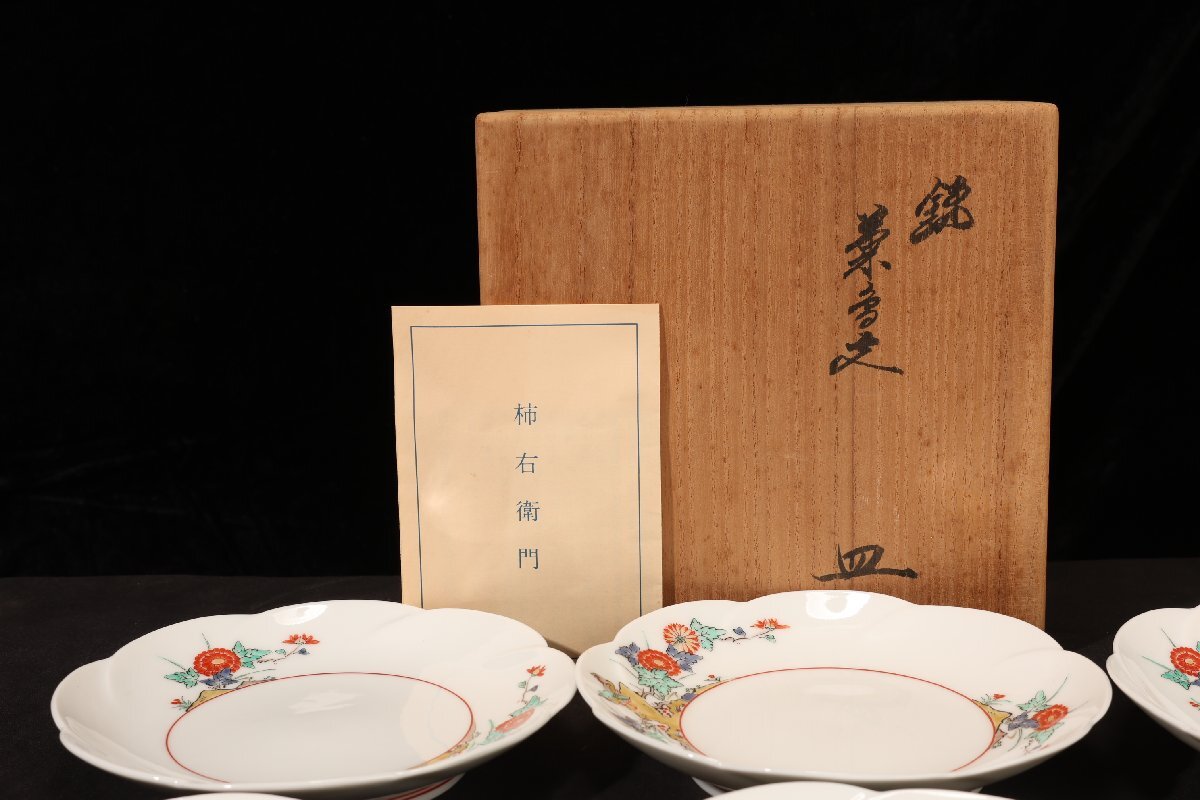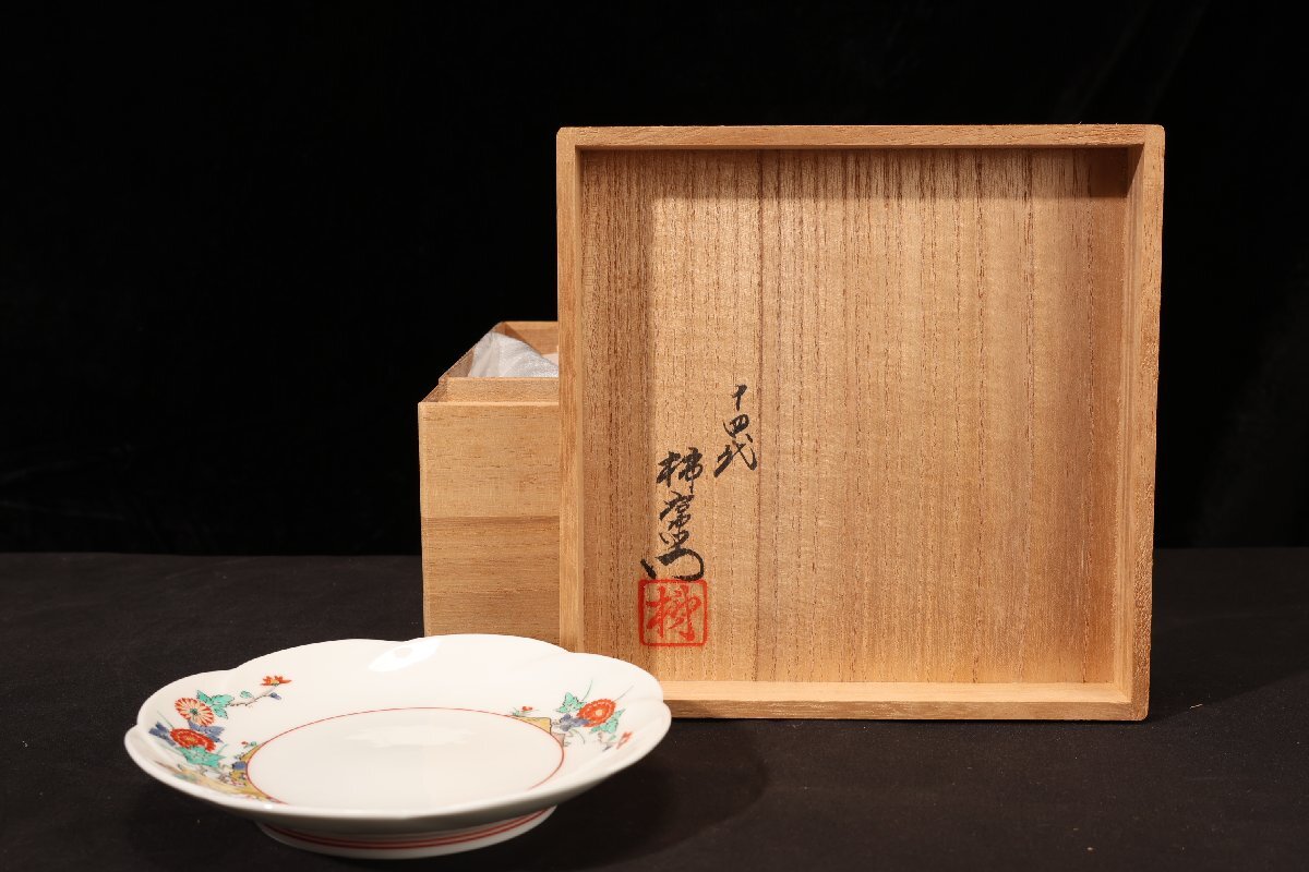 Product name: 珍品堂 1円から T61-15 人間国宝 十四代目 酒井田 柿右衛門窯 牡丹花紋 皿 共箱 木箱 時代物 古美術 骨董品 アンティーク