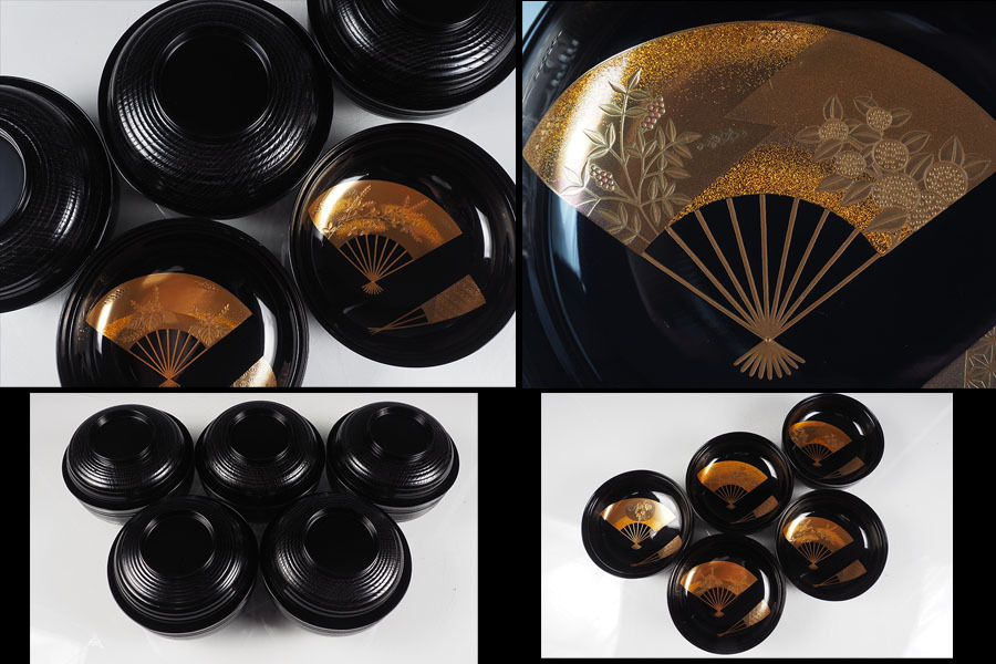 Product name: A_XB70 大向高洲堂 輪島塗 金蒔絵 漆器 煮物椀 五客 共箱 栞付き / 天然木漆塗 最高級 吸物