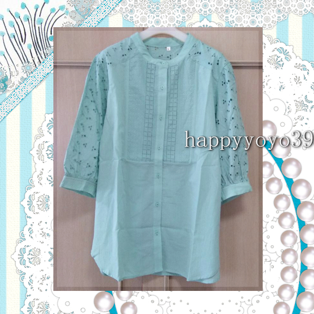 Product name: 激安 新品 5Lミントセージ 楊柳 七分袖レース シャツブラウス 大きいサイズ スキッパー プルオーバー オーバーシャツ ミセス チュニック