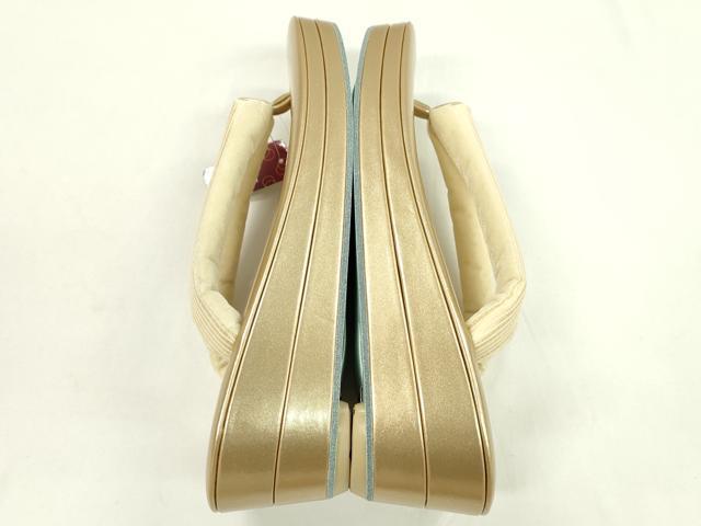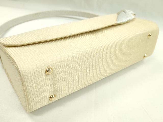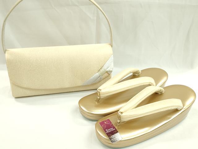 平和屋着物▼和装小物 和装バッグ・草履セット リボン ベージュ 金銀糸 草履サイズ:L 逸品 未使用 CAAW4017ju