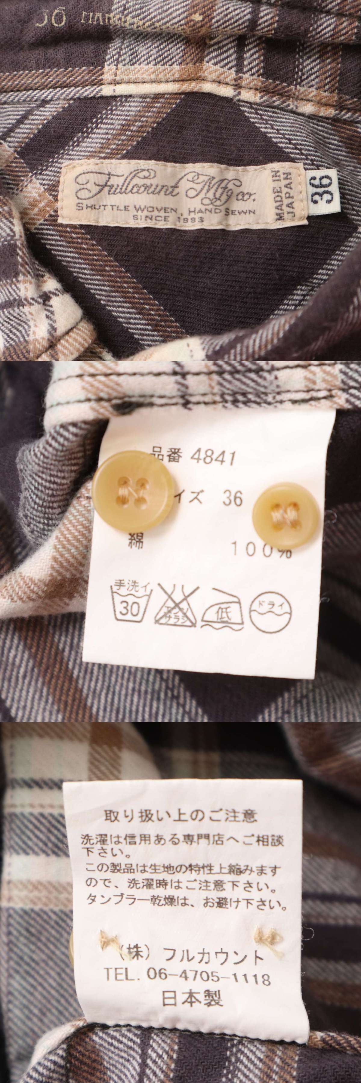 Product name: FULLCOUNT フルカウント 通年★ チェック 長袖 ボタンダウン シャツ Sz.36 メンズ 日本製