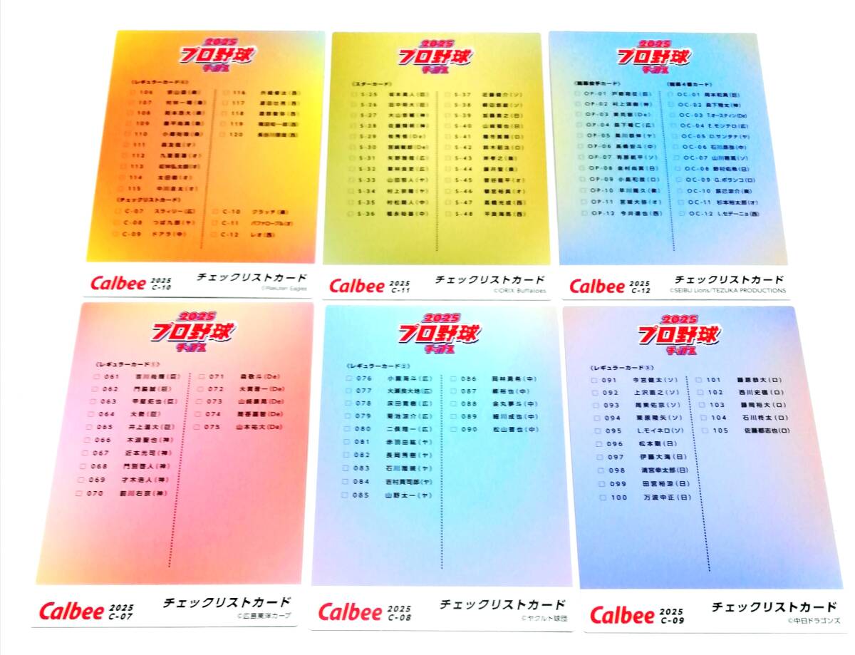 2025 第2弾 チェックリスト 全6種セット  ★ カルビープロ野球チップス つば九郎 ドアラ  スライリー クラッチ レオ バファローブル