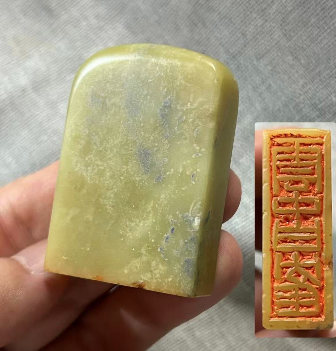 Product name: 青田石藍帯 遊印 2 保管品コレクション 古印材 篆刻 書道 印材 中国美術 印章 印鑑 検: / 寿山石/ 鶏血石 / 田黄石 / 青田石