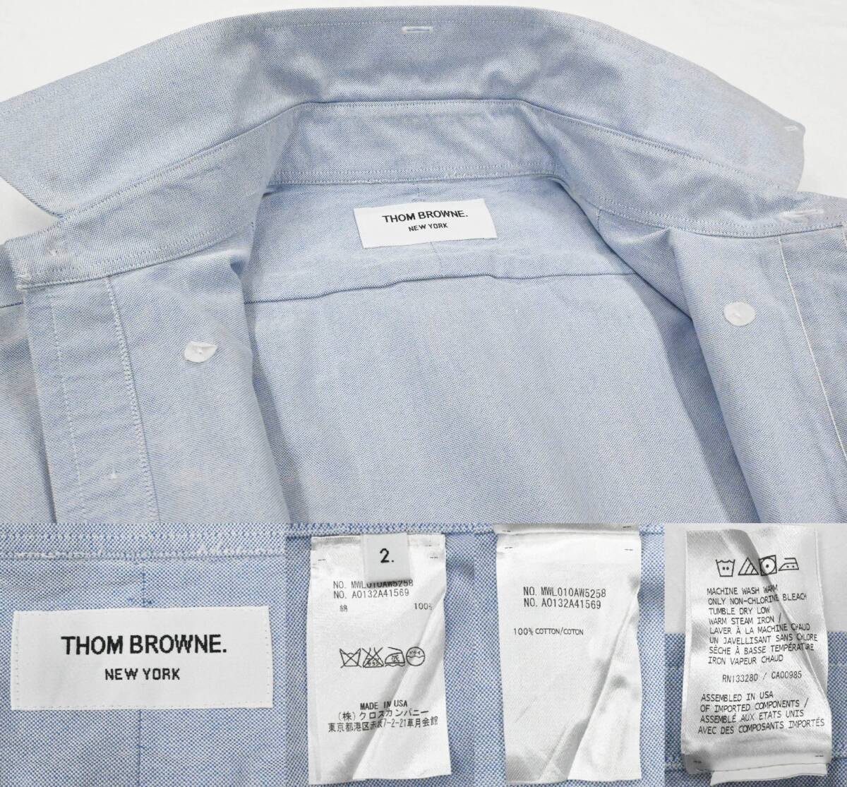 Product name: R452★美品 THOM BROWNE トム ブラウン トリコロール ライン パイピング コットン 長袖 シャツ Yシャツ 2 ブルー USA製 クリーニング済
