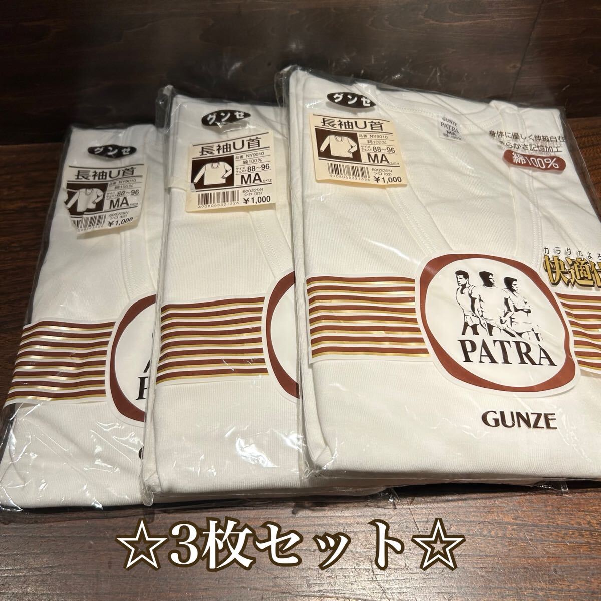 Product name: ◇3枚セット◇ GUNZE グンゼ 長袖U首 MAサイズ チェスト88〜96cm 綿100 肌着 下着 インナー