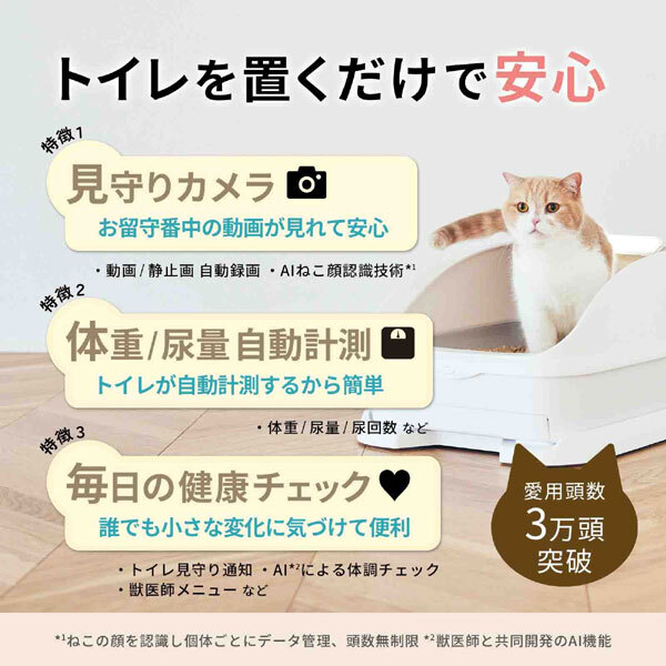 家族が留守中や就寝中の時も、常にねこの体調を見守ります。