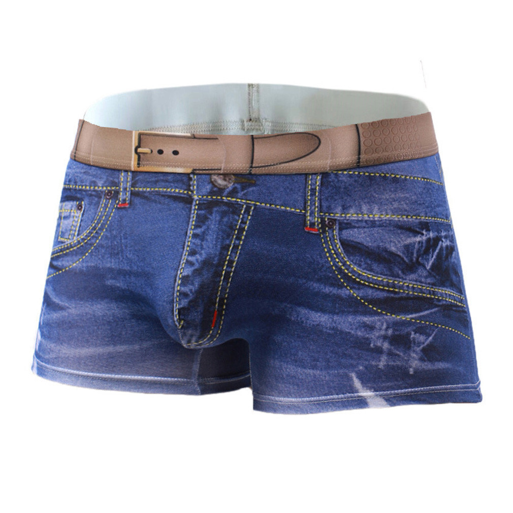 デニム風ボクサーパンツ ストレッチインナー 男性下着 ボクサーブリーフ ギフト ユニーク プリント 通気性良い 快適 L インディゴブルー