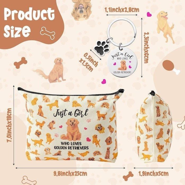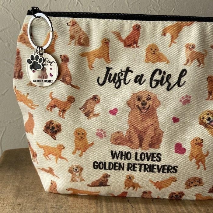 ゴールデンがいっぱい!ポーチ&キーホルダーのセット Japbor Makeup Bag for Dog Lovers ゴールデンレトリーバー