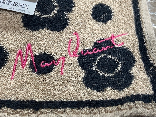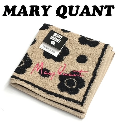 【MARY QUANT】(NO.6723)マリークワント タオルハンカチ ベージュ×黒デイジー 未使用 マリクワ