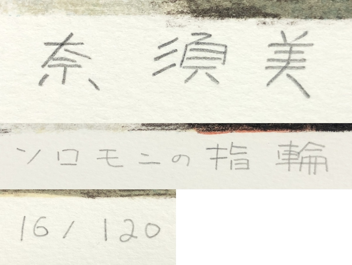 田島奈須美『ソロモンの指輪』リトグラフ ed.16/120. 鉛筆サイン シートのみ