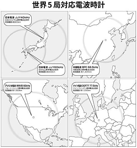 日本2局・中国・ドイツ・アメリカと5局の電波を受信し正確な時刻を表示する世界仕様の電波時計です。