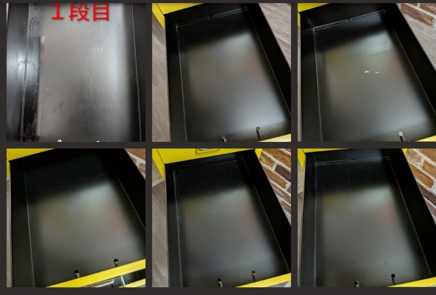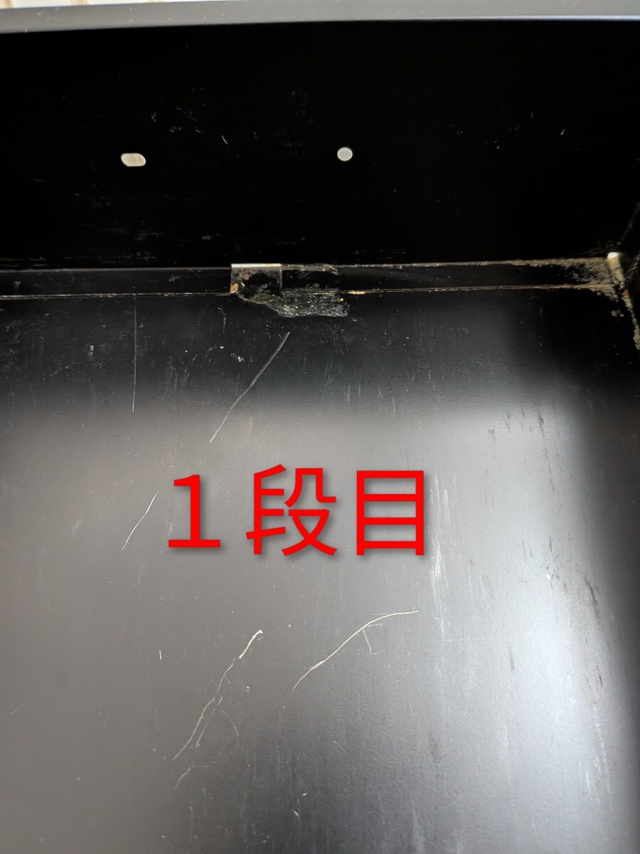 1段目の中がけっこう傷んでまして一部再塗装した跡、接着剤の跡が有ります。