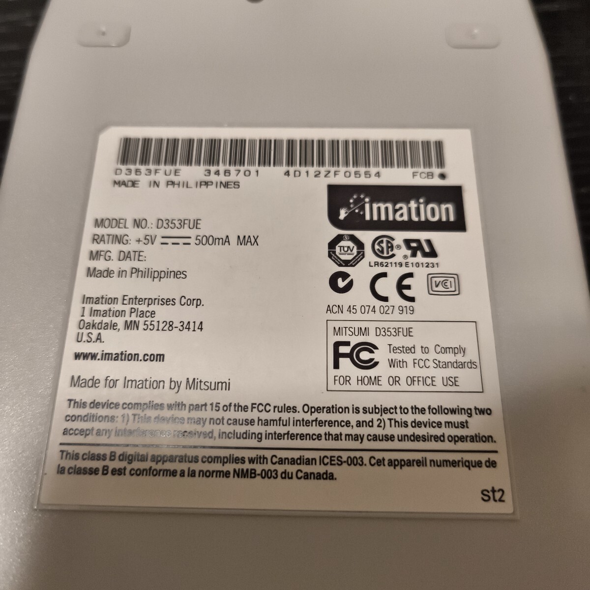 imation イメーション USB接続外付けFDD D353FUE 3モードフロッピーディスクドライブ搭載 ジャンク