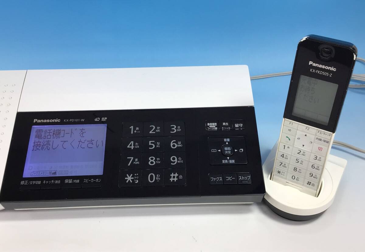 通電OK パナソニック 電話機 KX-PD101-W 子機 KX-FKD505 充電台 PNLC1052 FAX おたっくす パーソナルファックス パナソニック 本体 白/黒