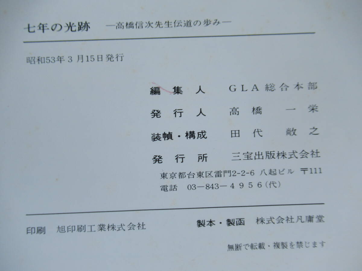 Product name: 「七年の光跡 高橋信次先生 伝道の歩み」 GLA総合本部 1978年 昭和53年発行 三宝出版株式会社 函入り 宗教人物伝 図録 写真集
