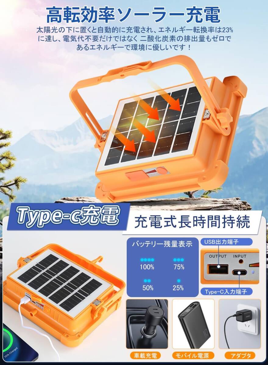 Product name: 投光器 led 作業灯 充電式 led ソーラー充電 フラッドライト 防水 キャンプ ライト ワークライト 登山 夜釣り 緊急 防災 停電対策 屋外照明