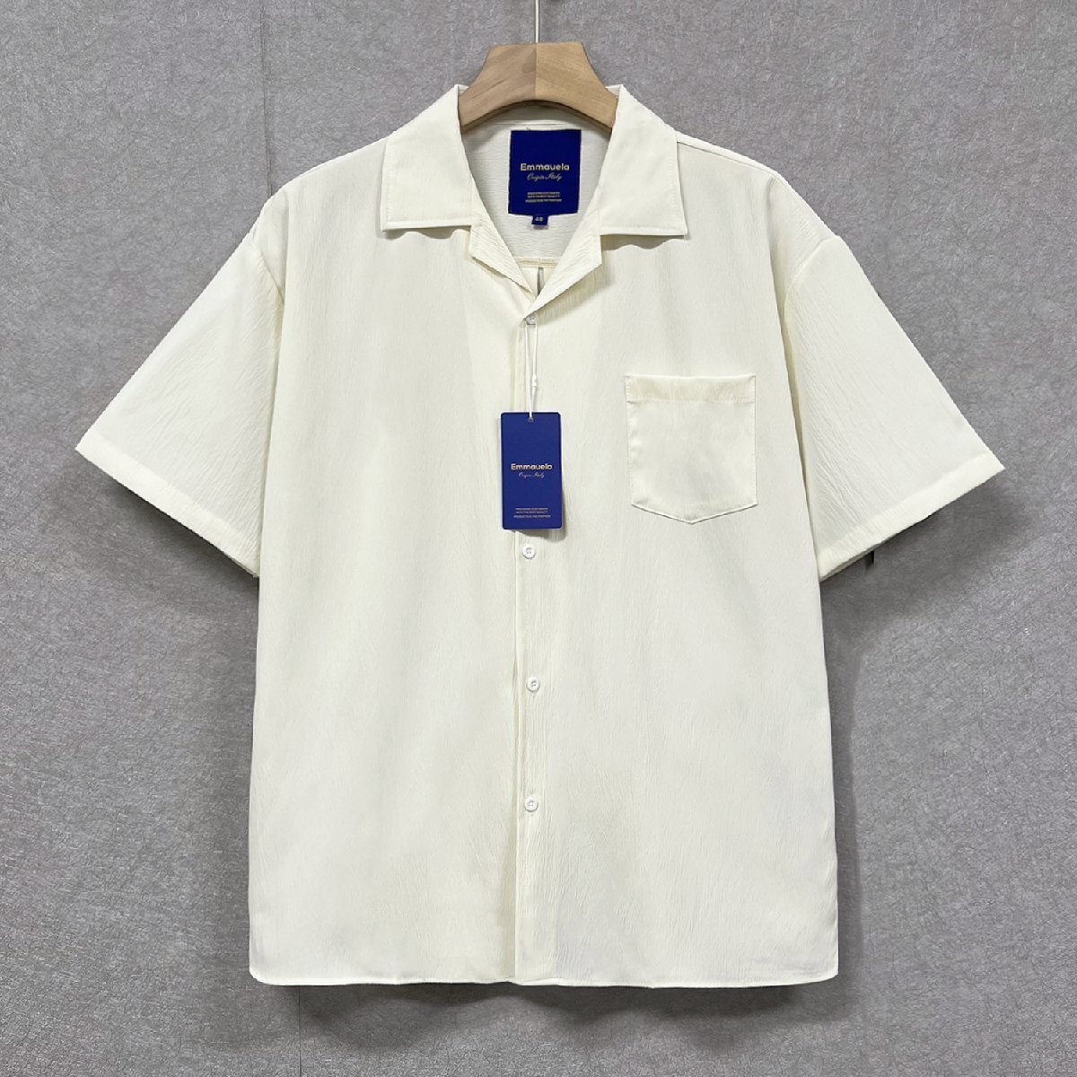 逸品・半袖シャツ 定価2万◆Emmauela・イタリア・ミラノ発◆高級 速乾 通気 薄手 無地 トップス 開襟シャツ お洒落 カジュアル レジャー XL/50サイズ