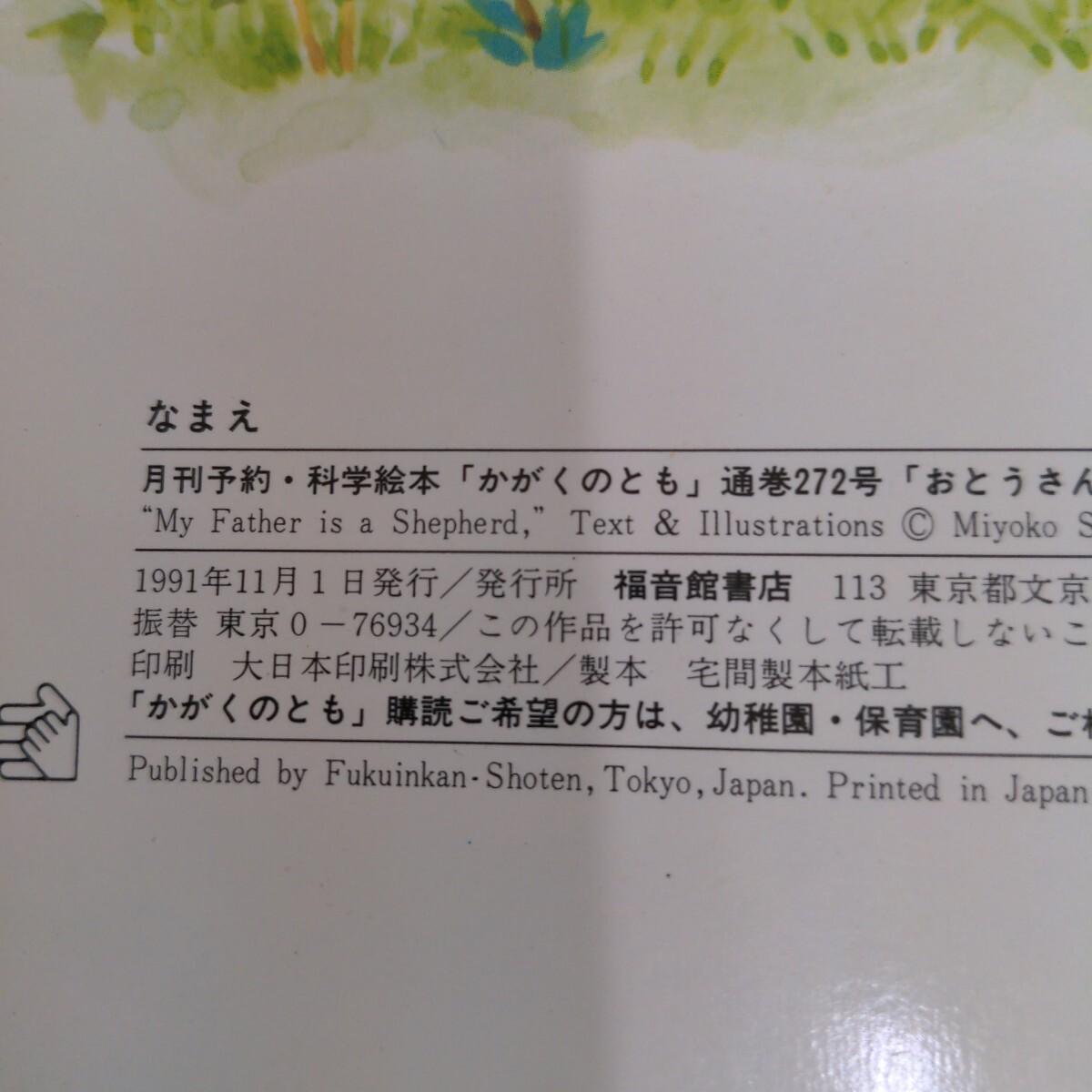 Product name: M2E-173 月刊 かがくのとも おとうさんは ひつじかい 作/白根美代子 1991年11月1日発行 はじめてであう科学絵本 福音館書店