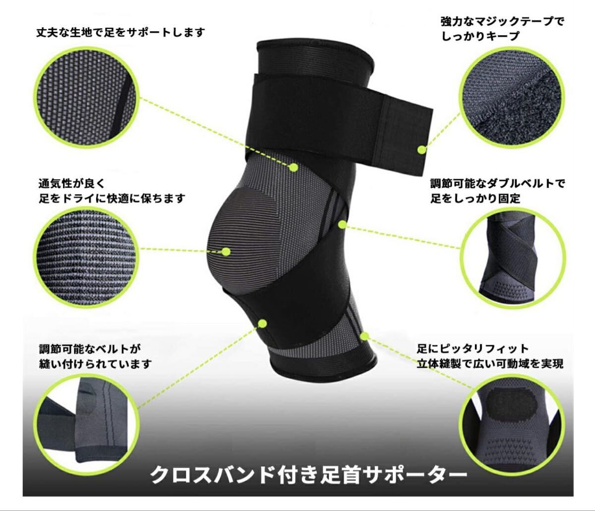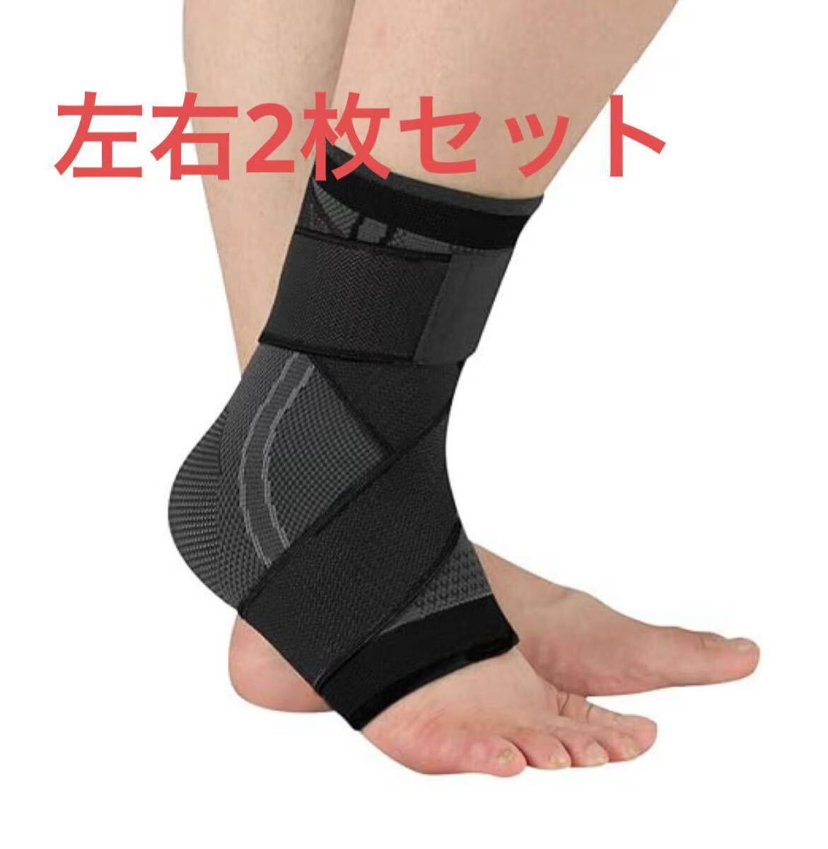 左右兼用2枚セット 足首サポーター スポーツ用 薄い 固定サポート 巻き方  足首保護 薄手 スポーツ用  ブラック Lサイズ