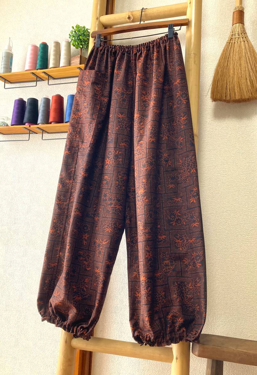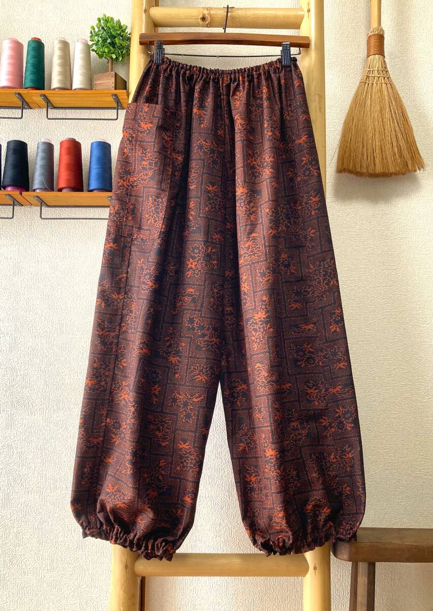 Product name: 鎌倉まるか堂 着物リメイク 紬 黒朱に椛切嵌めのもんぺ風 ●絹 ●ゆったりまるっこいシルエット L~LL●裾ふわパンツ●洗濯OK