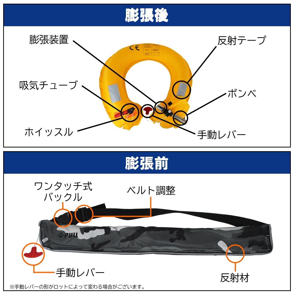 ●緊急時は手動にて膨張させてください。