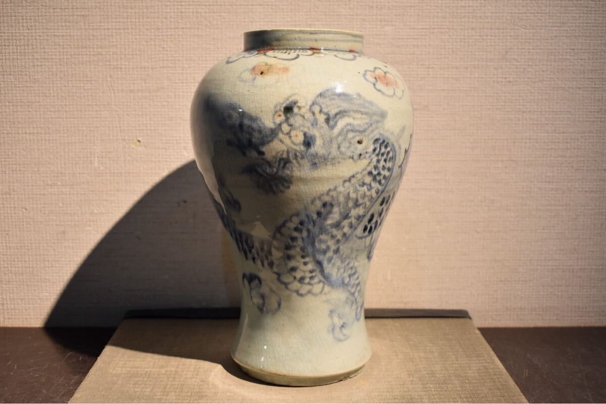 Product name: 【GE】R298◆李朝・高麗コレクター放出品◆《大名品》時代 李朝染付龍紋花入/中国古玩 朝鮮美術 花瓶 骨董品 時代品 美術品 古美術品 韓国
