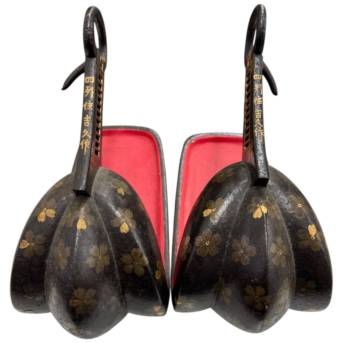 Product name: ◎中古品◎鐙 四列住吉久作 時代物 武具 馬具 古鉄 鉄鐙 あぶみ 古武具 鉄地象嵌鐙 一対 アンティーク 現状品 coI4904COA