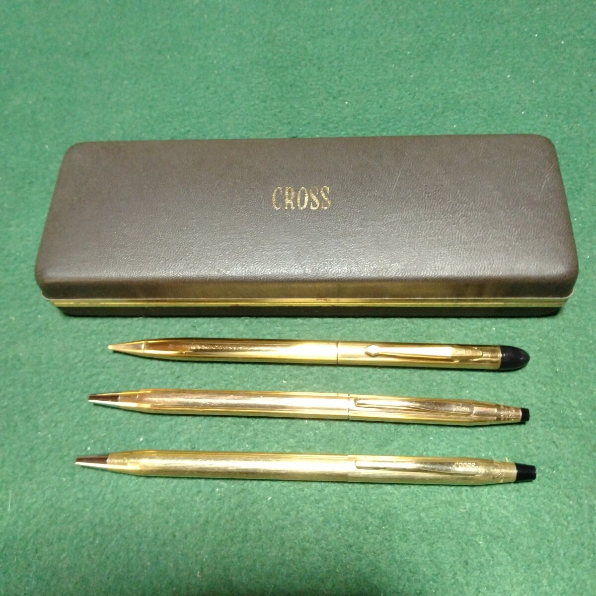 クロスのボールペン2本とウェアエバーのシャープペンシルです。ボールペン1本は、目立たないイニシャルがありますが、2本共まずまず綺麗な状態で、インクも問題ないです。ケース付きです。