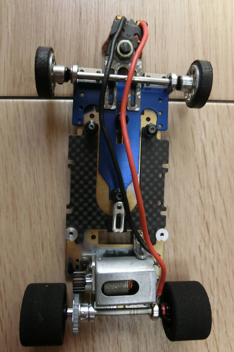 パンパシシャシー、ガイドステー、Tバー、サブフレームはカーボンです。サブフレーム調整はヘンシンビスを使用しています。モーターはポインターモーター仕様です。プラフィットシャーシはガイドステー、サブフレームカーボン、サブフレーム調整はヘンシンビスを使用しています。