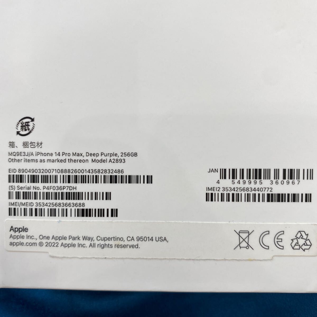 Product name: 初期化済み Apple アップル アイフォン iPhone 14 Pro Max 256GB 最大バッテリー容量85% SIMフリー SIMロックなし ディープパープル 箱付